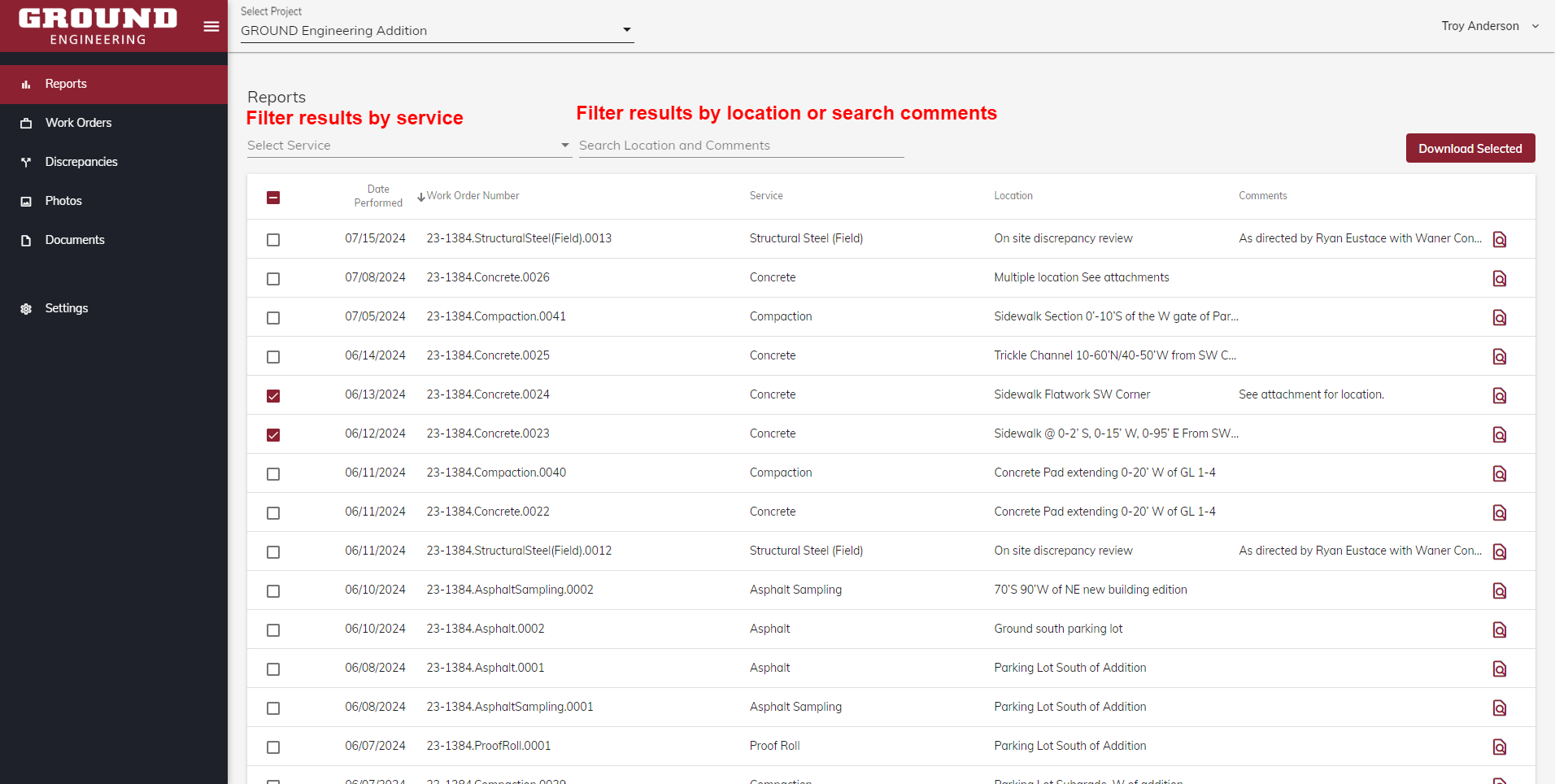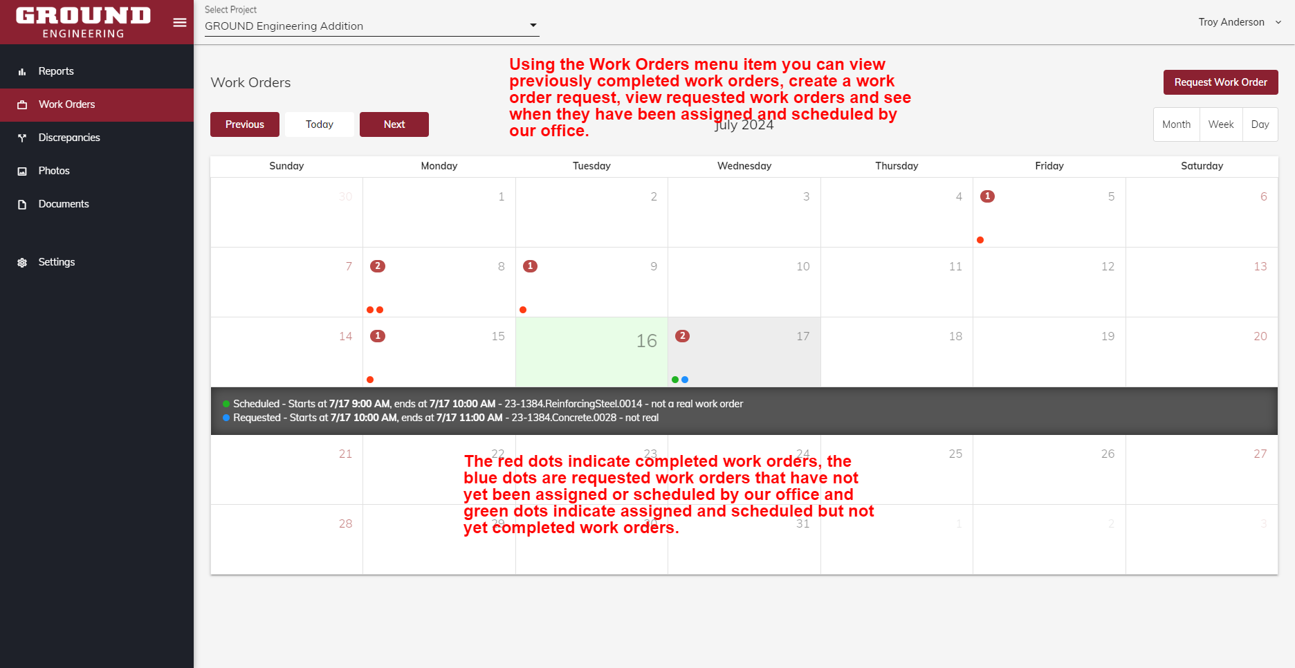 GROUNDops is our proprietary, industry leading portal providing our clients full-service access to their project data, photographs and ability to schedule services. Here are the features of our portal: